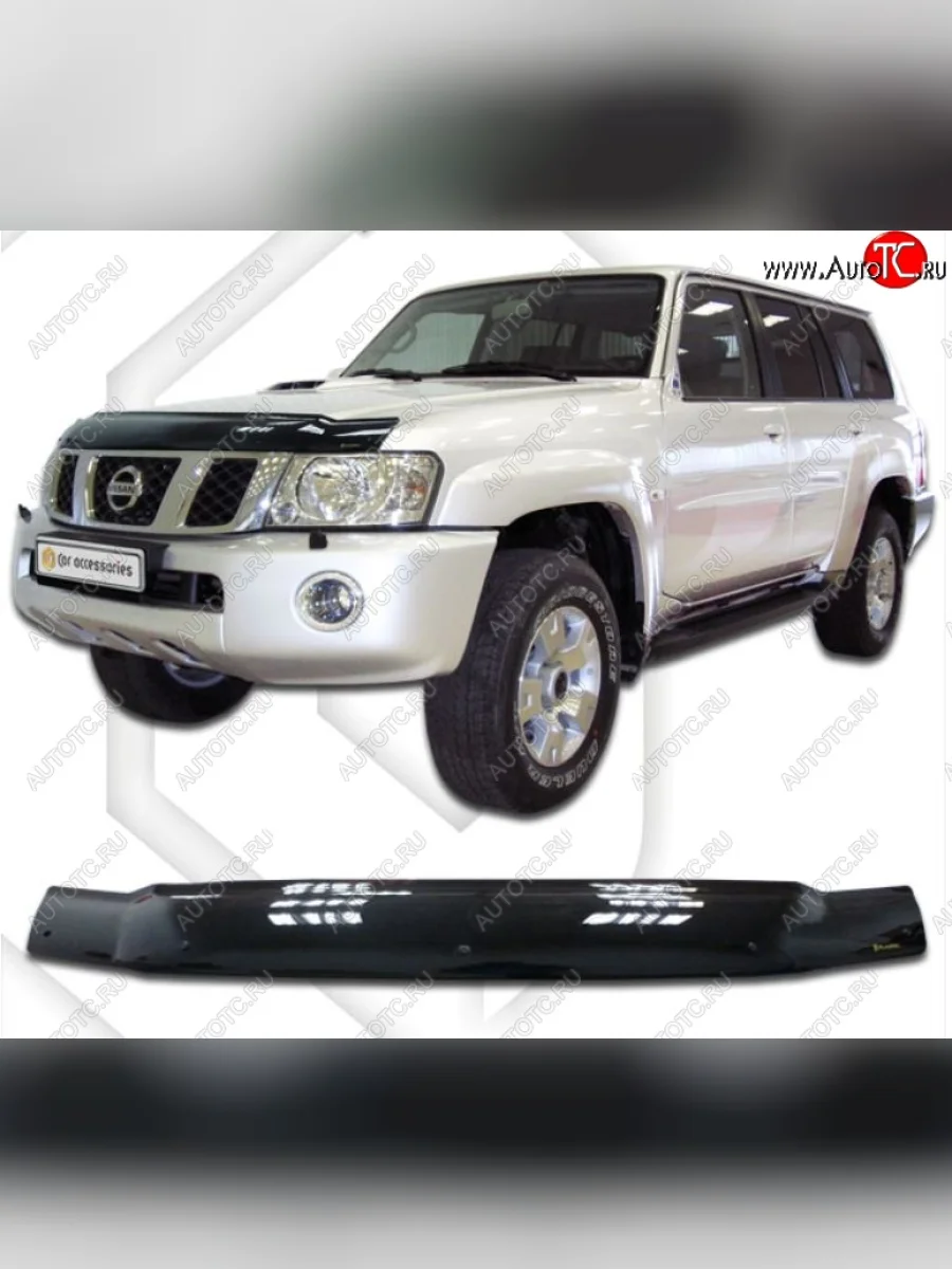 Дефлектор капота CA-Plastiс Nissan Safari (1997-1999) Y61 (Classic черный, Без надписи) в Горно-Алтайске республике Алтай