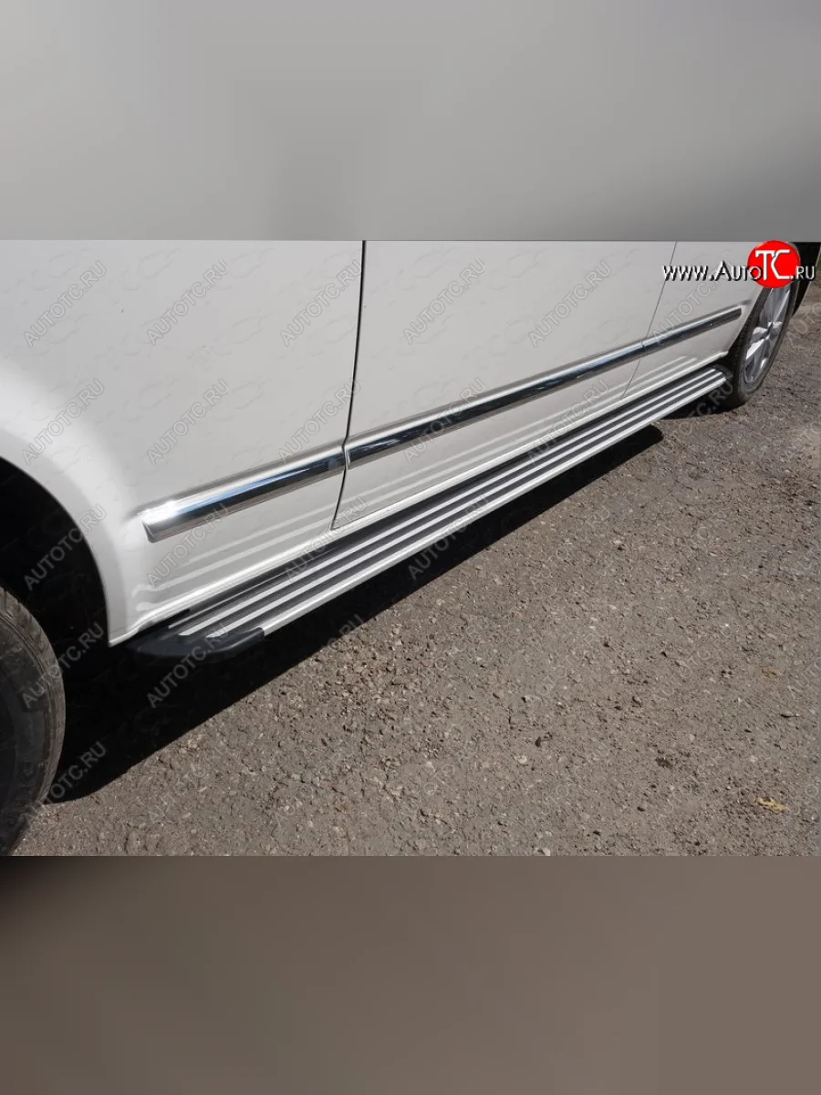 Пороги алюминиевые Slim Line ТСС Тюнинг Volkswagen Caravelle (2015-2019) T6 (Silver) в Горно-Алтайске республике Алтай