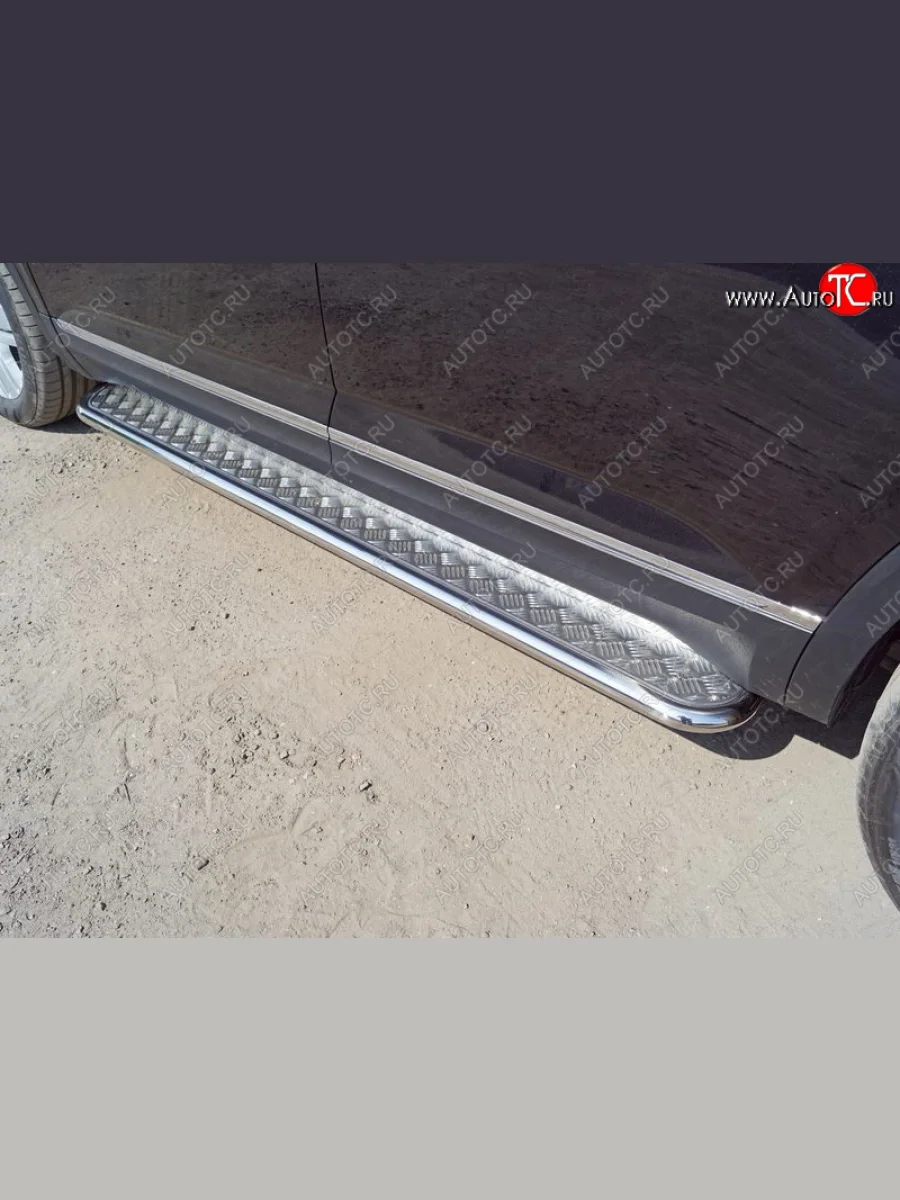 Пороги с площадкой 42,4 мм ТСС Тюнинг Volkswagen Teramont (2016-2020) 1 CA1 (серые) в Горно-Алтайске республике Алтай