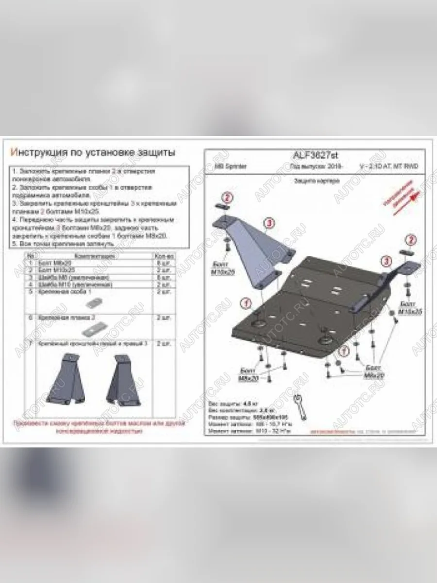 Защита картера (V- 2,1D AТ, MT RWD) ALFECO Mercedes-Benz Sprinter (2018-2025) W910 (алюминий 4 мм) в Горно-Алтайске республике Алтай