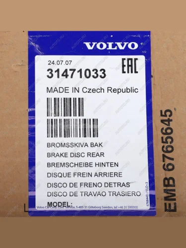 Диск тормозной VOLVO XC60 (08-) задний (1шт.) OE VOLVO 31471033 в Горно-Алтайске республике Алтай