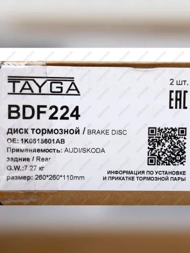 | Наименование | Диск тормозной VW Golf 5,6 AUDI A3 SKODA Octavia (1Z,5E),Yeti задний перфорированный комплект TAYGA TAYGA bdf224 в Горно-Алтайске республике Алтай |