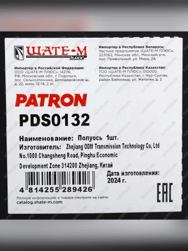 | Наименование | Вал приводной PEUGEOT 406 (96-04) передний правый PATRON PATRON pds0132 в Горно-Алтайске республике Алтай |
