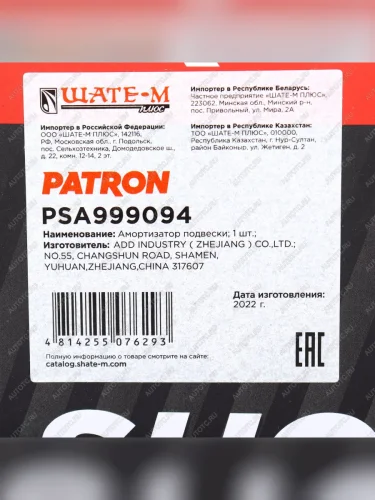 | Наименование | Амортизатор FORD Focus 3 передний правый PATRON PATRON psa999094 в Горно-Алтайске республике Алтай |
