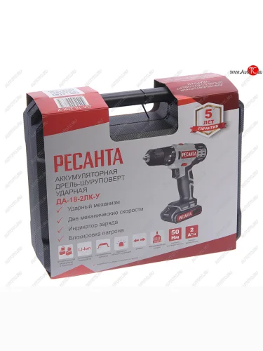Дрель-шуруповерт аккумуляторный ударный 18.0В 2.0Ач (2АКБ Li-Ion,кейс) РЕСАНТА РЕСАНТА да-18-2лк-у в Горно-Алтайске республике Алтай