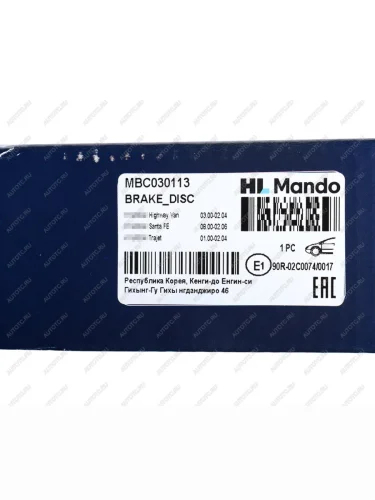 | Наименование | Диск тормозной HYUNDAI Santa Fe (00-) (2WD),Trajet (00-) передний (1шт.) MANDO MANDO mbc030113 в Горно-Алтайске республике Алтай |