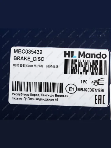 Диск тормозной MERCEDES ML (W163) (98-05) передний (1шт.) MANDO MANDO mbc035432 MANDO mbc035432 в Горно-Алтайске республике Алтай