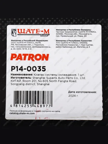 | Наименование | Клапан электромагнитный BMW 5 (E60),X5 (E53) системы охлаждения PATRON PATRON p14-0035 в Горно-Алтайске республике Алтай |