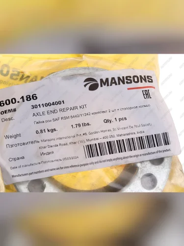Гайка SAF ступицы M56x2 (SW85) (стопорное кольцо,2 гайки) MANSONS MANSONS 600.186 в Горно-Алтайске республике Алтай