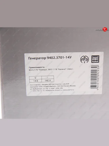 | Наименование | Генератор ВАЗ-1118,2170, 14В 140А (Замена 408381) ПРАМО ПРАМО 9402.3701-14у в Горно-Алтайске республике Алтай |