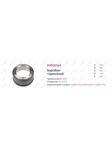 | Наименование | Барабан тормозной BPW полуприцепа (420х180х227) оси ECOMAX MARSHALL MARSHALL m1900164 в Горно-Алтайске республике Алтай |
