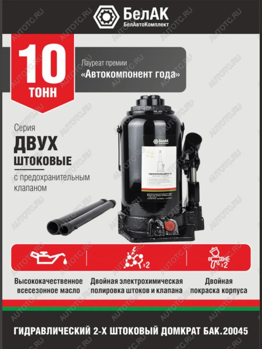 | Наименование | Домкрат бутылочный 10т 225-560мм 2-х плунжерный БЕЛАК БЕЛАК бак.20045 в Горно-Алтайске республике Алтай |