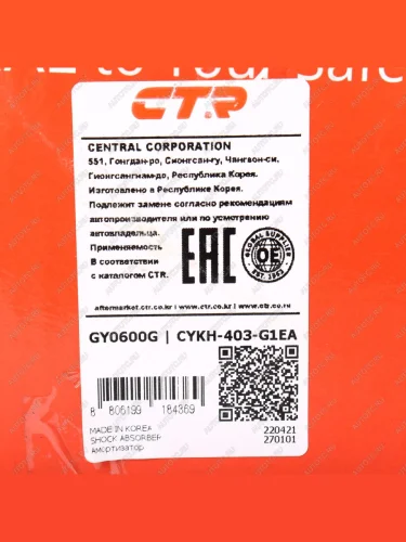 | Наименование | Амортизатор HYUNDAI Getz (02-09) передний левый CTR CTR gy0600g в Горно-Алтайске республике Алтай |