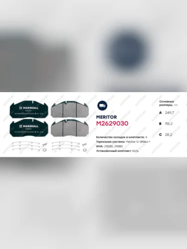 | Наименование | Колодки тормозные MAN TGA передние комплект (250х118х28мм) MARSHALL MARSHALL m2629030 в Горно-Алтайске республике Алтай |