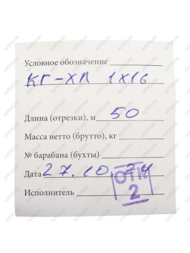 | Артикул (каталожный номер) | кг-хл 1х16 50м, kghl1h1650m |