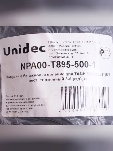 | Наименование | Коврик багажника TANK 500 (21-) полиуретан NORPLAST NORPLAST npa00-t895-500 в Горно-Алтайске республике Алтай |