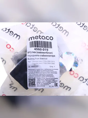 | Наименование | Втулка стабилизатора CHEVROLET Aveo (03-) переднего METACO в Горно-Алтайске республике Алтай |